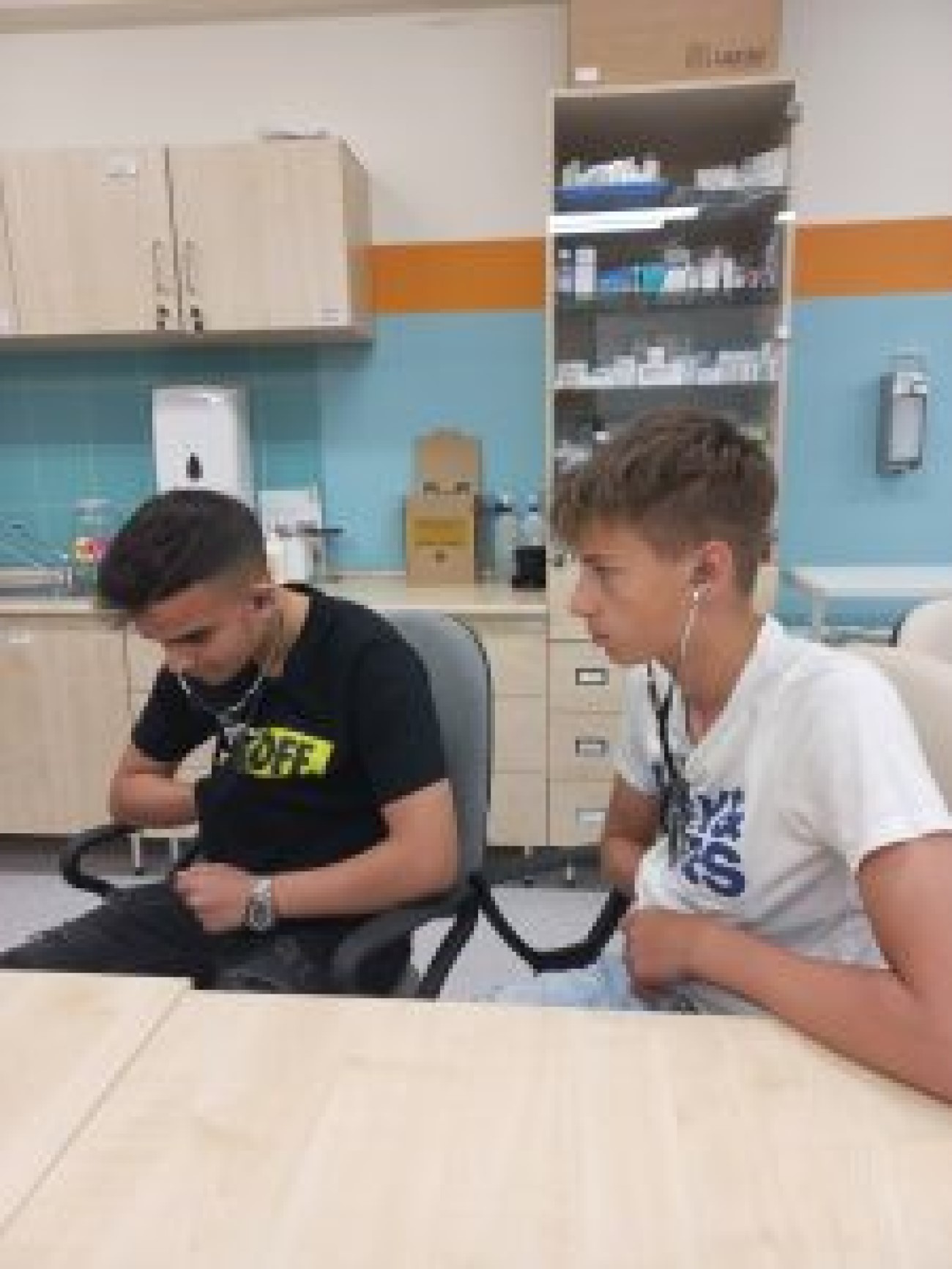 A fiatalok kipróbálhatták az orvosi hivatás egyik szimbólumának számító fonendoszkópot is, amivel mindenki meghallgathatta saját szívverését.
