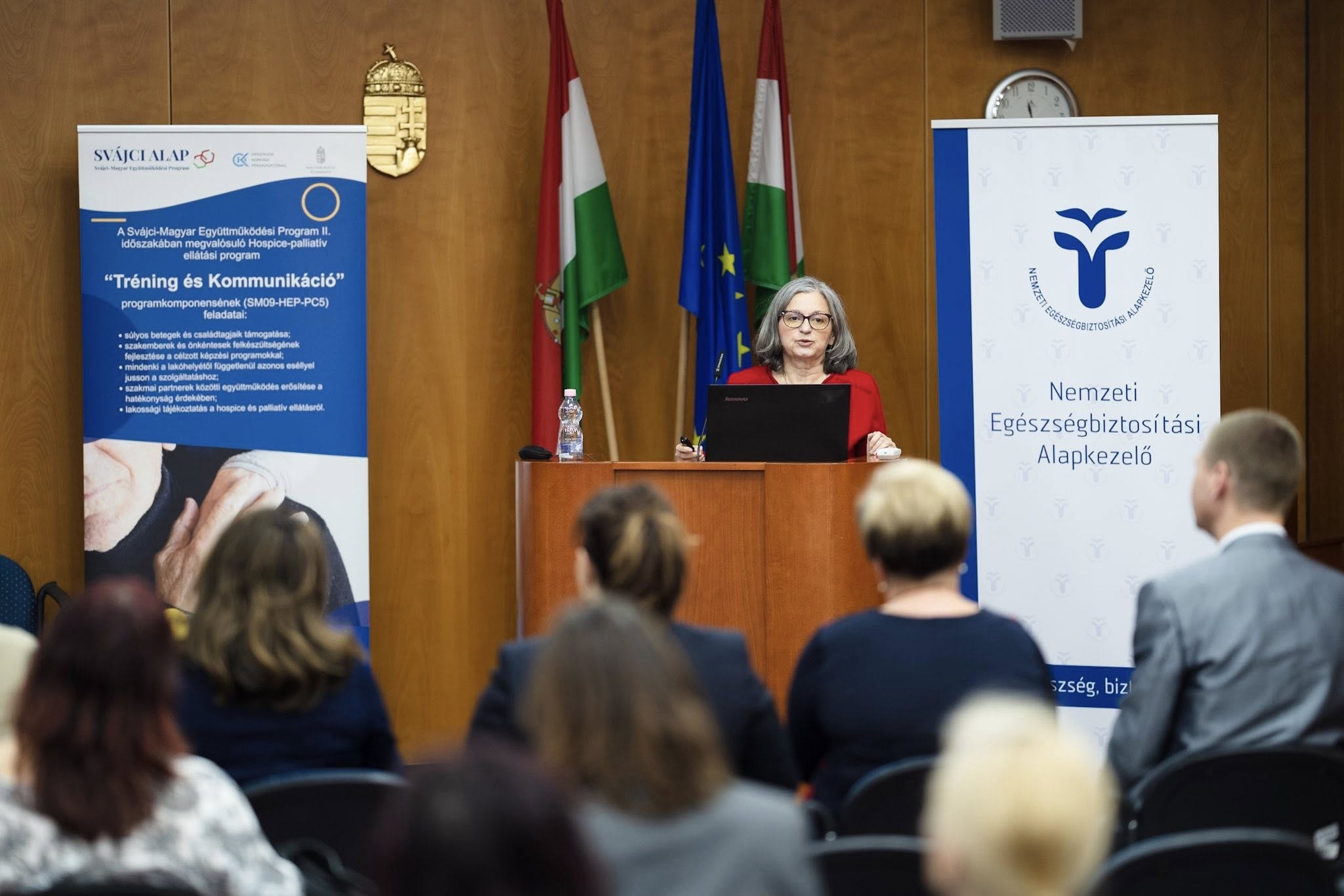 Első lakossági tájékoztató rendezvényét tartotta az Országos Kórházi Főigazgatóság a Hospice-palliatív ellátási program című projektben, a Svájci-Magyar Együttműködési Program „Tréning és Kommunikáció” programkomponens felelőseként.