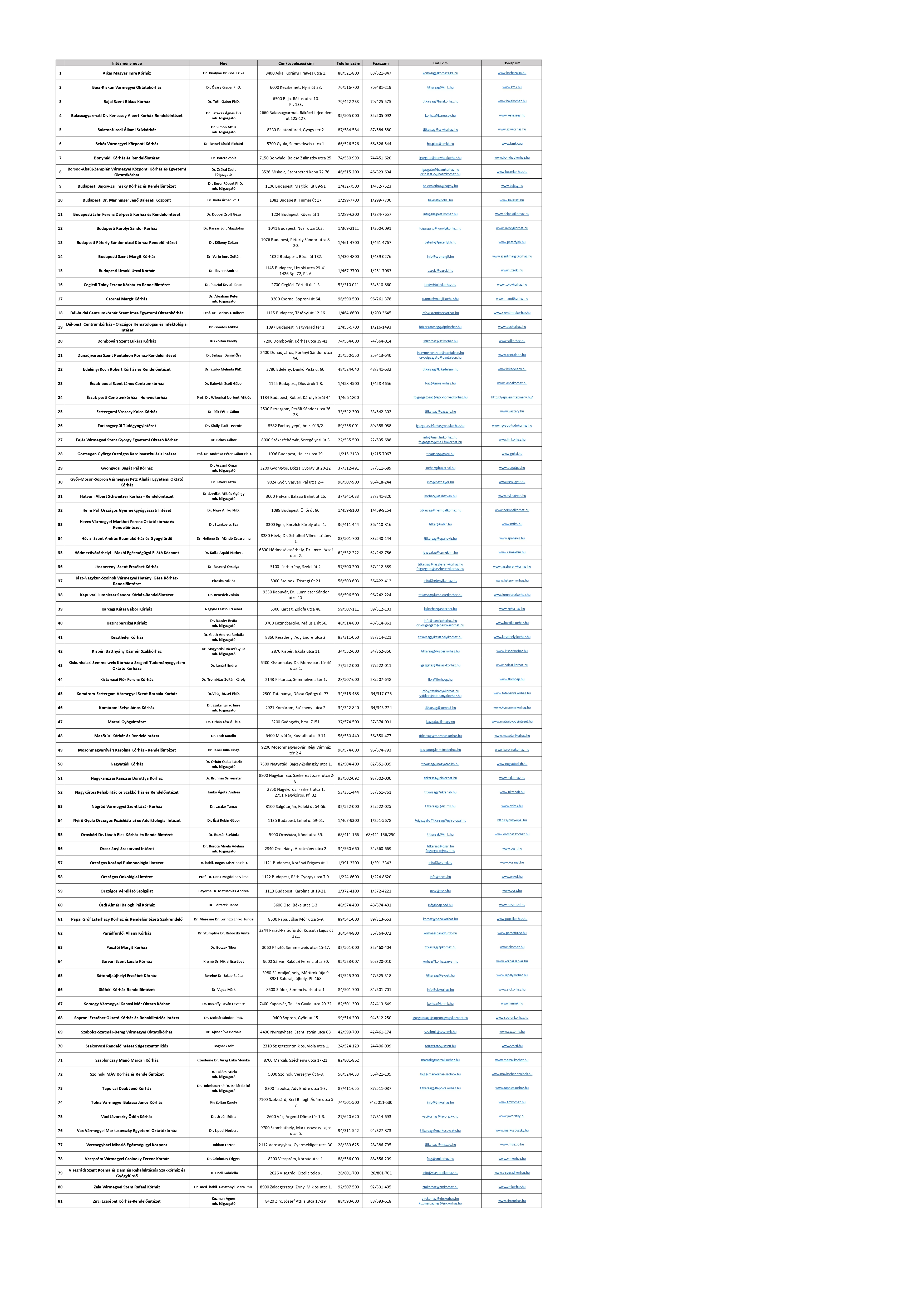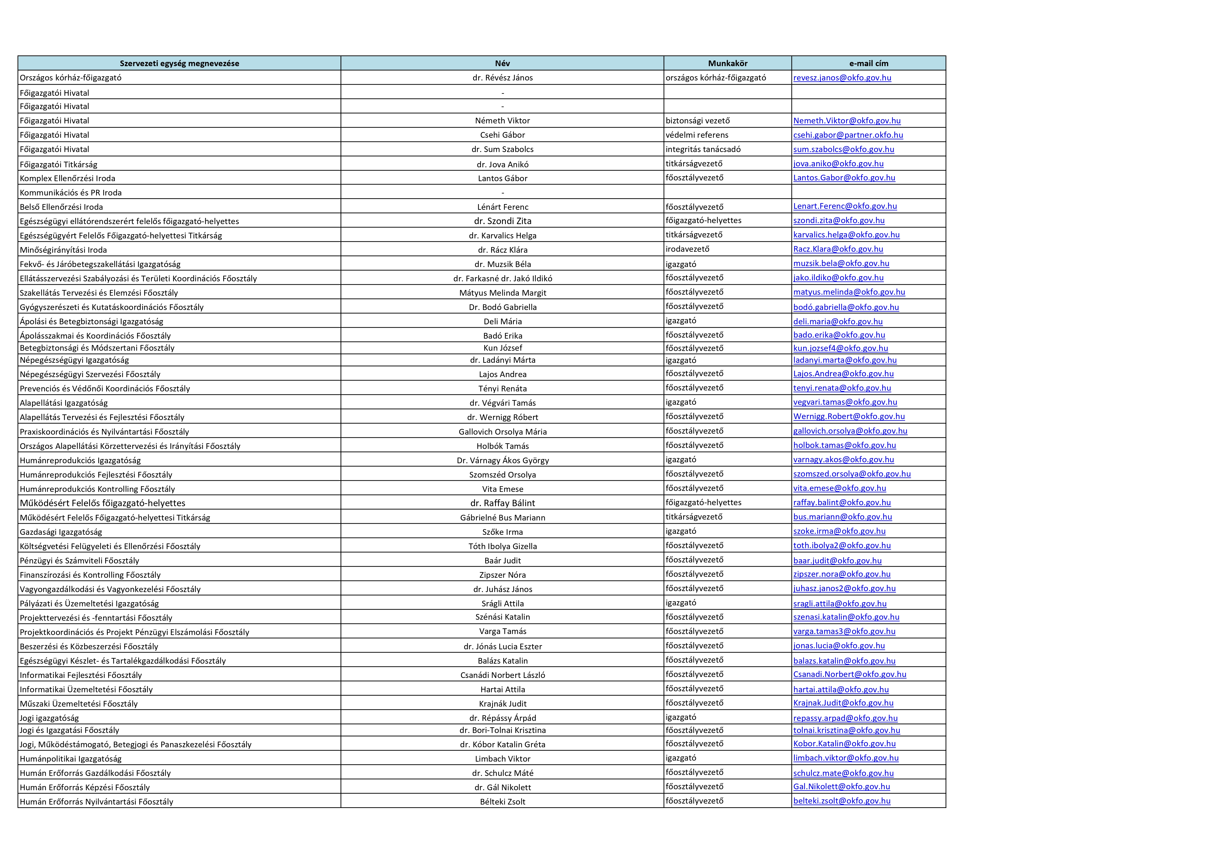 A közfeladatot ellátó szerv vezetőinek és az egyes szervezeti egységek vezetőinek neve, beosztása, elérhetősége, telefonszáma, elektronikus levélcíme |